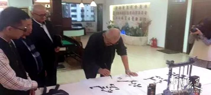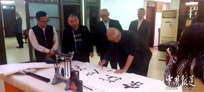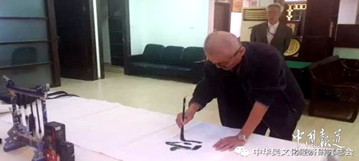 吴日峰宗亲现场挥毫据了解,台湾80%以上的吴氏宗亲祖籍地都在福建,吴日峰此行第一次到福建,便受到福建省吴氏委员会宗亲的热情接待,感觉回到自己家一般,吴发金常务副会长则代表福建省吴氏委员,欢迎他们有空经常回到福建自己家(福建省吴氏委员会)走走。吴日峰还亲自拿笔题写“宗谊交流”,赠送给福建省吴氏总会,寓意两岸吴氏子孙同根同源,吴氏一家亲。(中华吴文化经济研究总会供稿)