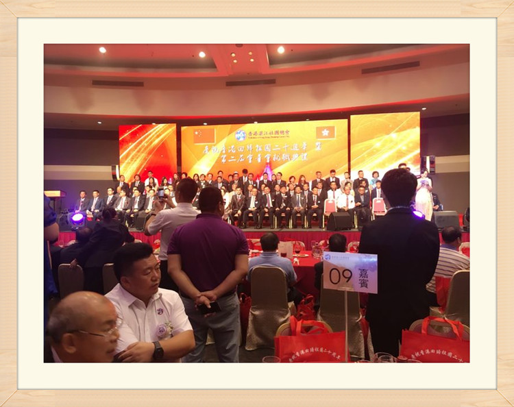 下图为:2017年6月16日,香港湛江社团总会举行庆祝香港回归祖国二十周年暨第二届会董就职典礼活动场面。