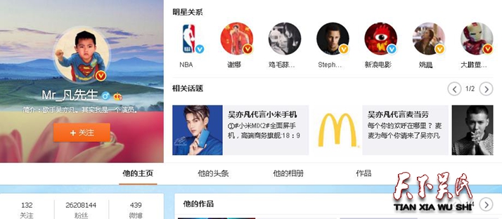天下吴氏讯(特约采编吴蜀丰 )吴亦凡(Kris),1990年11月06日出生于广东省广州市,演员、歌手。 2007年吴亦凡通过S.M. GlobalAudition Canada加入了韩国SM娱乐公司,参加练习生培训。2012年作为EXO组合成员正式出道,并任EXO/EXO-M队长、主Rapper、门面担当。 2014年5月15日吴亦凡正式向首尔中央地方法院请求判决与SM娱乐公司“专属合同”无效。之后,吴亦凡回归中国国内发展,出演个人首部电影,担任徐静蕾执导的电影《有一个地方只有我们知道》男主角,凭此获得第3届伦敦国际华语电影节最佳新锐男演员奖。12月26日确定担任电影《致青春·原来你还在这里》男主角程铮。