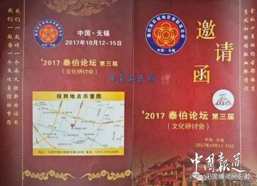 中国报道讯(记者吴蜀丰)2017年10月12日—15日, 江苏无锡梅里古都吴氏祖地隆重举行了由泰伯吴氏祖地宗亲联谊总会主办的2017泰伯论坛(第三届)文化交流会,这次论坛主题为“泰伯至德文化与中华传统文化”。来自海内外、港澳台、全国各地的各级领导、各科专家、各类学者、各业精英、各路宗亲欢聚一堂,探讨至德文化,共商发展大计。江苏仁勤律师事务所吴彭龄合伙律师有幸带领无锡市吴文化研究会代表组参加此次论坛活动,感慨颇多。