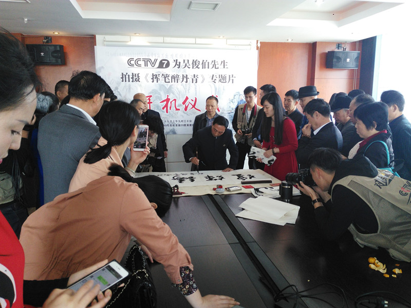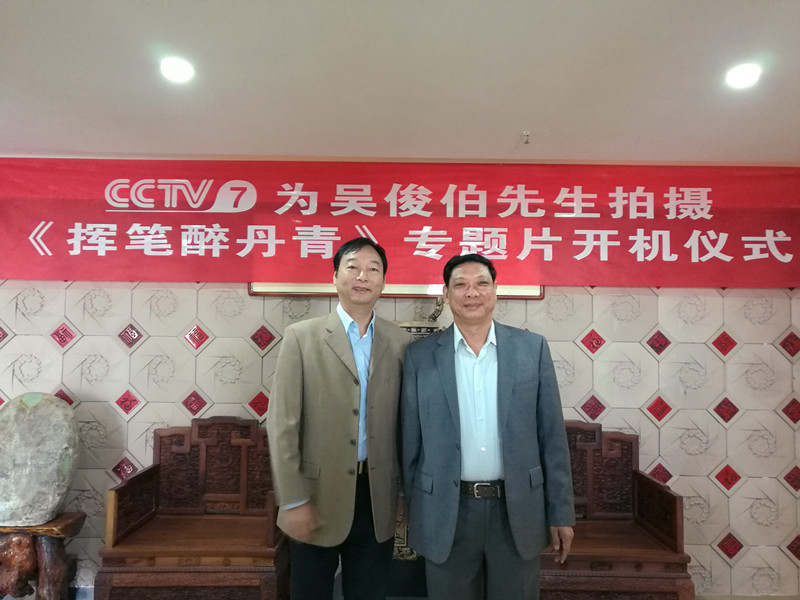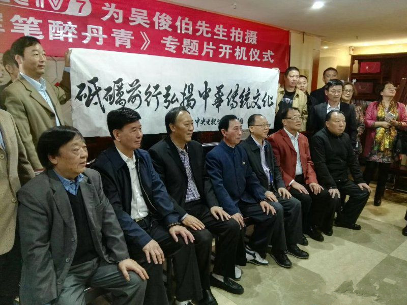 【江西省谱牒研究会吳氏文史研究会、江西省吳氏宗亲总会讯:吳小平】2017年9月29日上午九点半,在南昌市洪都北大道的高能首座20楼的吳俊伯先生的书画工作室里,中央电视台第七频道,为国内著名书画家吳俊伯院士隆重举行电视专题片《挥笔醉丹青》的开机仪式。