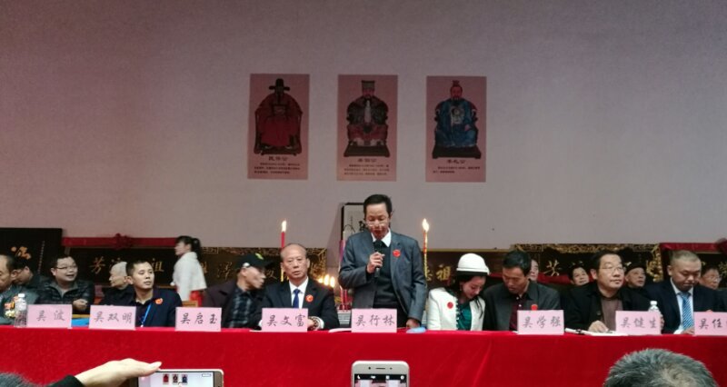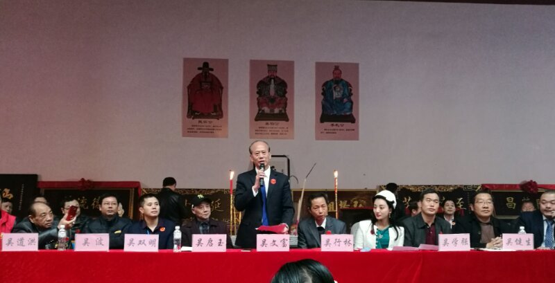 吴文富在致辞中说,初冬时节,我们在千年名村——东阳隆重聚会,共同庆祝萍乡吴氏宗祠竣工,这是萍乡吴氏的一大喜事,更是中华吴氏的一大盛事,吴氏宗族的兴旺发达,更为萍乡市增添了一道亮丽的文化景观。