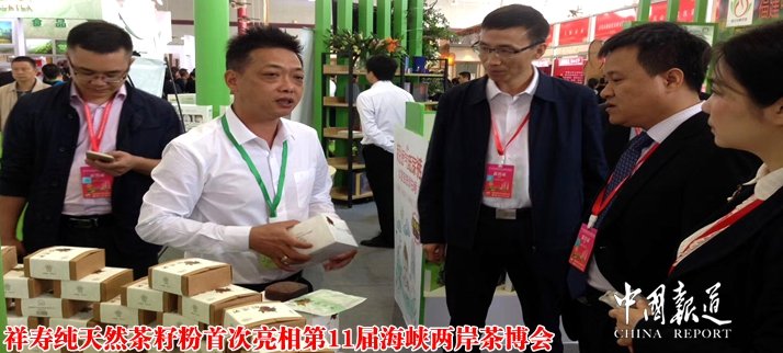 “我们的茶籽粉是采用山区野生山茶籽脱油提纯精研而成的,可以用它清洁厨具、个人洗护,是一款天然绿色、高效环保的家用洗洁用品。”首次亮相茶博会的祥寿纯天然茶籽粉展区前,被游客围得水泄不通,面对大家的咨询,南平市祥寿投资有限公司负责人吴祥明热情地向他们作介绍。据了解,茶籽粉富含天然茶皂素,不添加任何化学物,使用安全,不伤皮肤,作为月子产品深受广大产妇喜爱。