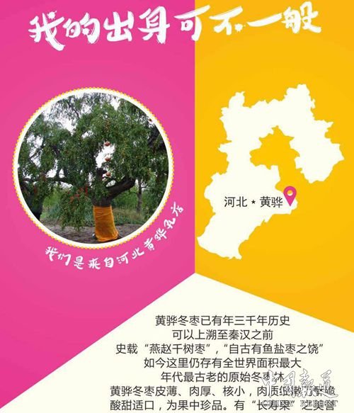 黄骅冬枣已有年三千年历史,可以上溯至秦汉之前,史载“燕赵千树枣”,“自古有鱼盐枣之饶”,“柳县章武(秦汉时黄骅域内置柳县、章武 )皆植枣,以此物当食,家酿半斛,殷实富足”。元世祖时,黄骅冬枣形成规模化种植,黄骅市齐家务聚馆村的冬枣林即由此时种植发展形成。如今,这里仍存有全世界面积最大,年代最古老的原始冬枣林,林中百年以上冬枣古树1067株,其中树龄600年以上者198株,这些古冬枣树虽饱经风霜,仍枝繁叶茂,果实累累。