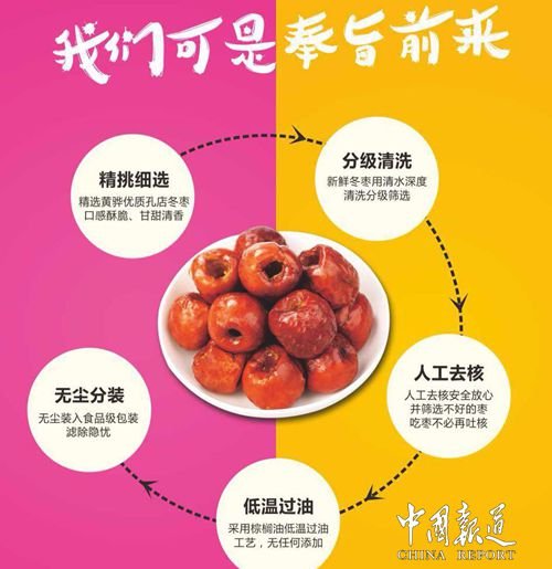 枣帮主脆冬枣,以黄骅优质鲜冬枣为原料,采用高科技工艺加工制成,不含任何添加剂,保留了鲜冬枣原有的营养,且口感更加酥脆香甜,食后回味无穷,是高档的健康食品。冬枣含糖量适中,味美可口,具有清理肠胃,有助于消化之功效,因此是美容和减肥的佳品。