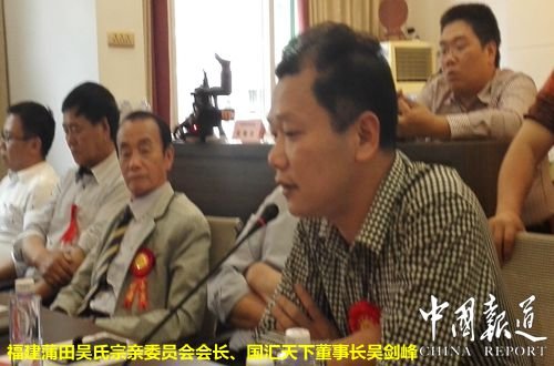 来自福建蒲田吴氏委员会会长、国汇天下董事长吴剑峰近几年对参加吴氏各地宗亲参加活动感受很深。他认为精诚团结,求同存异。不利于团结的话不讲,互帮互助,包容谦让,总结经验,合作共赢。并就国汇天下项目的运作进行交流分享。