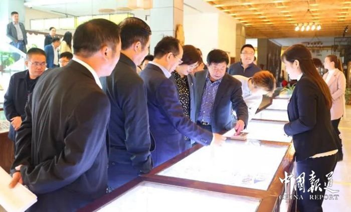在朱砂古镇,季厅长一行的第一站是刚竣工的朱砂古镇新游客服务中心,查看其中售票、餐饮、服务、办公等各项基础设备及整体运营情况,季厅长说:“这里的精心设计的扶梯扶手、别出心裁的座位布局、人工智能的地图识别等无一不彰显国内一流水准”。来到朱砂大观园,这里神奇瑰丽的朱砂宝石、庄严华贵的皇帝朱批、朱砂作底的珍贵唐卡等均让督察组成员赞叹。督察组同志们被这里展示的朱砂工艺品和朱砂历史文化所吸引,纷纷拿出手机和相机拍摄记录。