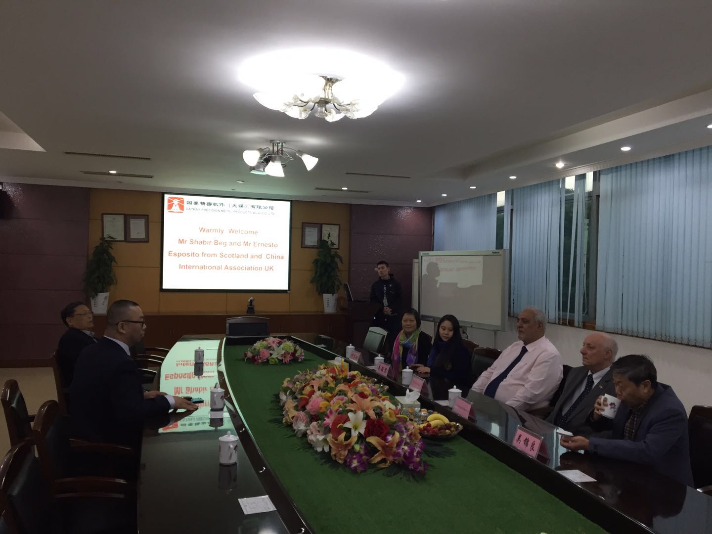 2017年11月4日,英国吴氏宗亲会(创会会长)吴锦良带领家人及英国苏格兰中国国际协会副会长一行至吴天赐之子吴健龙的国玮精密制造科技(无锡)有限公司进行参观学习和交流。由申锡机械有限公司总经理吴杰、无锡吴氏祖地宗亲会会长吴仁山、秘书长吴乐一陪同。