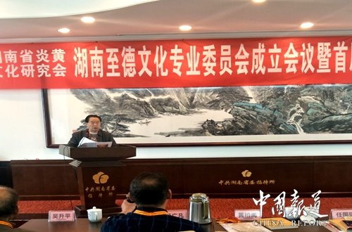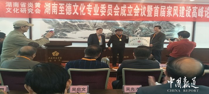 中国报道讯(特约采编 吴梅)湖南省炎黄文化研究会主办的湖南至德文化专业委员会成立暨首届家风建设高峰论坛今日(11月22日)在湖南省省委招待所举行,来自贵州、江西、湖北、江苏、怀化、娄底、永州、郴州、长沙、衡阳等地60余名专家学者参加了会议。