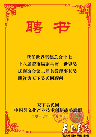 天下吴氏网第二批顾问人员公示