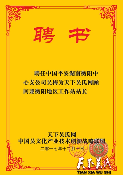 我是吴氏好儿郎,仁爱谦让传万代。相约天下吴氏网,因为有你更精彩!