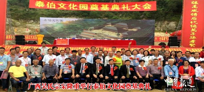 中国报道讯(记者吴蜀丰)今日上午(11月13日)9:58点,广西泰伯文化园奠基典礼在广西北流泰伯文化园工地正式开始,来自海内外吴氏宗亲挥揪铲土,为泰伯文化园培基动工。
