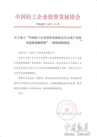 中国报道讯(记者吴蜀丰特约采编 吴宏宇)中国第一家以姓氏命名的产业联盟和公益基金——中国吴文化产业技术创新战略联盟和吴文化公益基金获批今日(2017年8月8)联盟在北京召开了首发会员授牌仪式暨第一届工作会议。