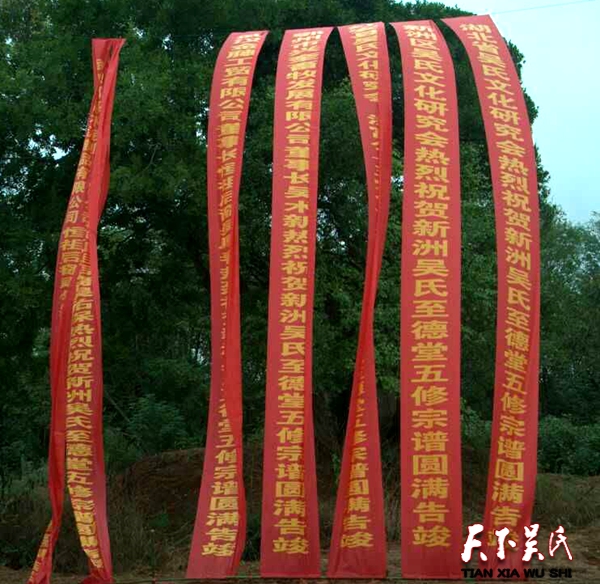 据介绍,新洲区至德堂举行庆祝第五届《吴氏宗谱》纂修圆满告竣活动。活动得到了是湖北省吴氏文化研究会吴志刚会长和吴熙仪秘书长,湖北省吴氏文化研究会执行会长、武汉市新洲区吴氏文化研究会吴合林会长和红安县吴氏文化研究会玉堂祖天佑公后裔吴(胡)振宇会长等单位和宗亲们的大力支持,同时也得到了吴氏至德堂恒祖后裔吴厚春、吴佑保、吴汉东、吴均华和堂祖后裔吴汉明等仁人志士的鼎力相助。