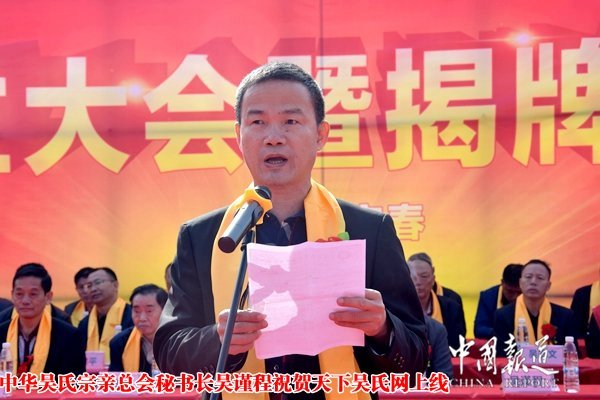 中华吴氏宗亲总会秘书长吴谨程祝贺天下吴氏网上线!