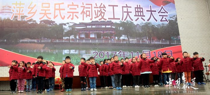 中国报道讯(记者吴蜀丰)今日(2017年11月18日),来自福建、广东、湖南、重庆、四川、贵州、云南、辽宁、江苏、江西等省市及台湾、香港、加拿大等地区近3000余名吴氏宗亲代表相约江西萍乡市芦溪县芦溪镇东阳村共同庆贺吴氏宗词落成典礼。