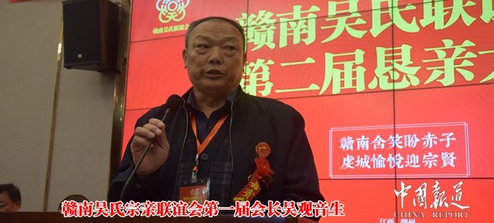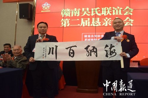 中国报道讯(记者吴蜀丰)欣逢盛世,国泰民安,中华吴氏,不甘落伍,顺应时势,与时俱进。今日(2017年11月19日),来自广东、福建、江苏、湖南、贵州、重庆、江西省赣南地区近100余名吴氏宗亲代表在赣州市康莱博国际酒店参加赣南吴氏宗亲联谊会第二届恳亲会。