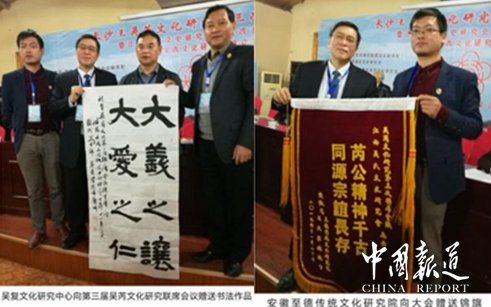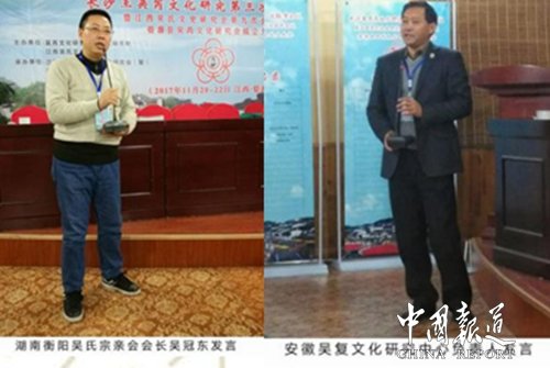 中国报道讯(记者吴蜀丰特约采编 吴三郎)2017年11月21日,深秋的婺源天气渐凉,江西省上饶市婺源的华逸气氛热烈,来自北京、上海、浙江、安徽、江苏、湖南、湖北、贵州、山东以及江西省各地的吴芮文化研究学者以及吴芮后裔共200多人欢聚在这里,参加由吴芮文化研究联席会议秘书处和江西吴氏文史研究会主办,江西上饶市吴芮文化研究会(筹)、婺源县文化研究会承办的“长沙王吴芮文化研究第三次联席会议。