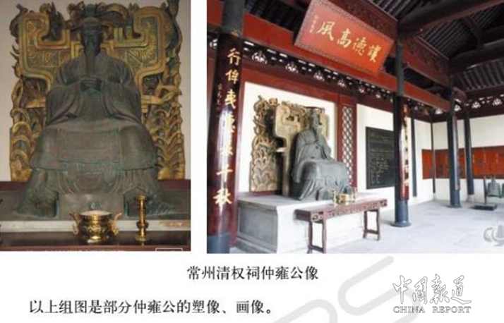 旒冕冠 仲雍公和泰伯公同为吴国的君主,因而代表身份和地位的旒冕冠采用和泰伯公一样的等级。服饰也基本一致。