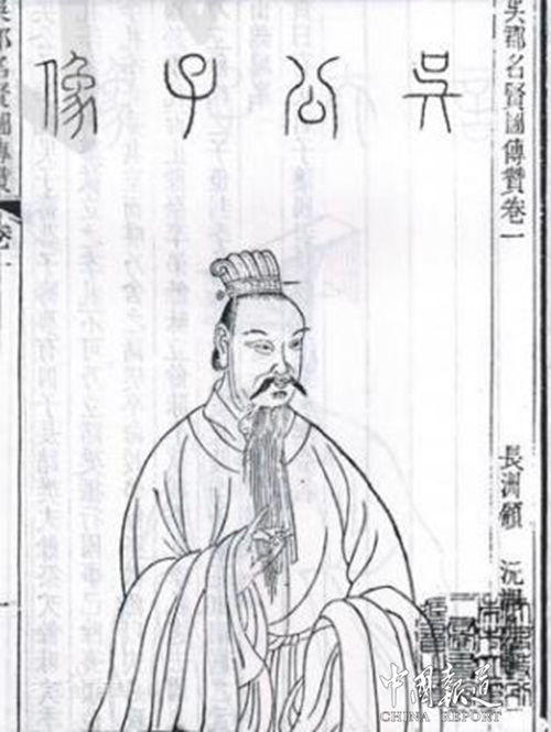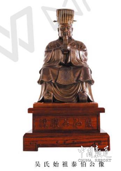 吴太伯,又称泰伯,吴国第一任国君,吴文化的缔造者。姬吴开姓始祖。《史记·卷三十一·吴太伯世家》译之:吴泰伯与其弟仲雍,均为周太王(古公亶父)之子,王季历之兄。季历十分贤能,又有一个具有圣德的儿子昌。太王想立季历以便传位给昌,因此泰伯、仲雍二人就逃往荆蛮,象当地蛮人一样身上刺满花纹、剪断头髪,以示不再继位,把继承权让给季历。季历果然继位,就是王季,昌后来也成为文王。泰伯逃至荆蛮后,自称“句(勾)吴”。荆蛮人认为他很有节义,追随附顺他的有一千余户,尊立他为“吴泰伯”。《论语·泰伯第八》:“泰伯,其可谓至德也已矣,三以天下让,民无得而称焉”。泰伯的孝友、诚信、谦让、自强、开拓进取的至德精神,是中华民族传统文化的瑰宝。汉桓帝赞曰:“贤哉吴泰伯,庆泽弥流长”。清康熙帝题“至德无名”,乾隆帝题“三让高踪”赐匾称颂。为此,作为周代诸侯国吴国第一代君主和吴文化的缔造者,姬吴得姓始祖,慈祥、睿智、坚毅的表情以及神格化的形象是我们设计和雕塑创作的核心。整体以画圣吴道子画像为蓝本进行创作。
