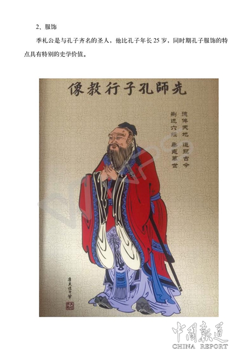 季札公是与孔子齐名的圣人,他比孔子年长25岁,同时期孔子服饰的特点具有特别的史学价值。