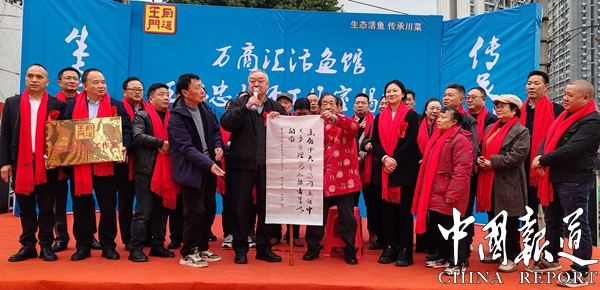 中国报道讯(吴蜀丰吴天下报道)在重庆,南来北往游客又添新口福了,位于重庆市九龙坡石新路八益建材C馆五楼万商汇活鱼馆于3月12日举行隆重的开业庆典暨川菜泰斗王志忠大师工作室正式揭牌。