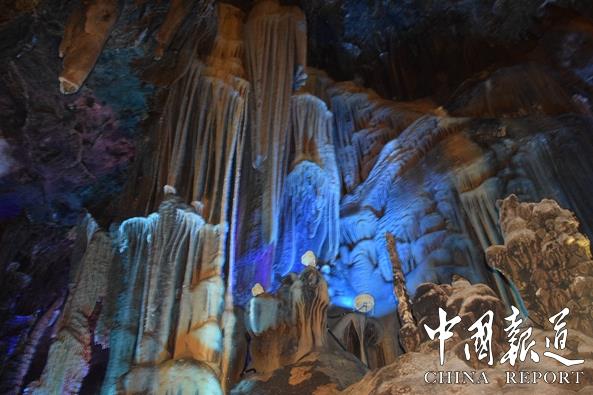 天下溶洞奇观长乐宫。长乐宫溶洞景区位于广西东兰县长乐镇,四面群山环抱,距东兰县城20公里,全程二级公路, 是以溶洞、峡谷、石瀑布、古生物化石等地质遗迹景观为主体,辅以丰富的生态景观和人文景观,集科学和美学价值于一体的大型综合性地质公园。是广西首个花园式景区,景区大门、迎宾门、洞门,设计了古典中国文化建筑,再溶入当地壮族古代建筑风格,使景区成为中国第一个宫殿式民族景区典范。景区宽阔大气,沿线种有18株罗汉松,意寓十八罗汉在为游客送福、送财、送健康,还种有36株九里香,9999株种类各异的花草,进入景区,花团锦簇,绿树成荫,花香扑鼻,各种鲜花、绿化盆景,争奇斗艳,美不胜收。景区内还铺有情侣走廊、秋风真情步道等。景区内还设置中共党史石刻壁墙, 记载中国共产党百年历史。还有锦鲤鱼池等等。把旅游、探险、访古、休闲汇于一体。洞内是仙境、洞外是花园。称得上世界笫一的景区。