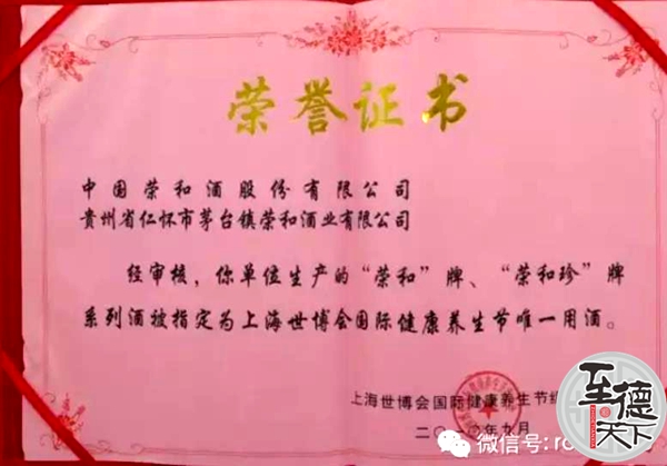 2010年被指定为上海世博会国际健康养生节唯一用酒。