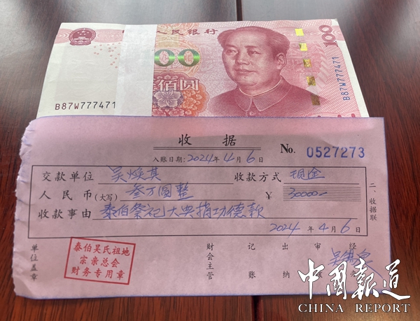 中国报道讯(吴蜀丰通讯员吴乾山吴建东吴启林)4月 5日下午,无锡市顺心保洁有限公司董事长、新吴区泰伯文化研究会联谊会会长吴焕其宗长前往泰伯庙为中国吴文化节首届吴氏企业商品展览会活动赞助三万元人民币。