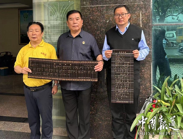 天下吴氏网总编吴蜀丰向吴云峰 吴利凡宗贤赠送《至德流芳》歌曲竹简