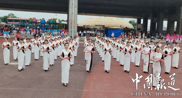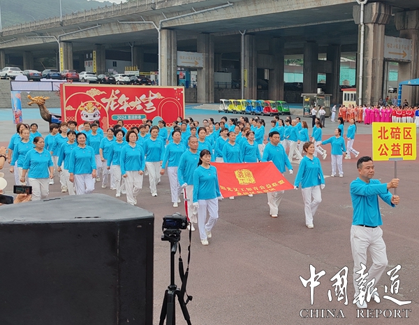 中国报道讯(吴蜀丰报道)2024崇高健康大舞台第六届全民运动会开幕式大型公益健身活动于5月11日上午在重庆渝北区圣名游乐城隆重举行,来自重庆渝中区、南岸区、沙坪坝区、北碚区、合川区、大渡口区等地3000余名中老年运动员及知青方阵、旗袍方阵、文艺歌舞方阵为开幕式助兴。