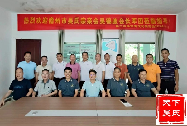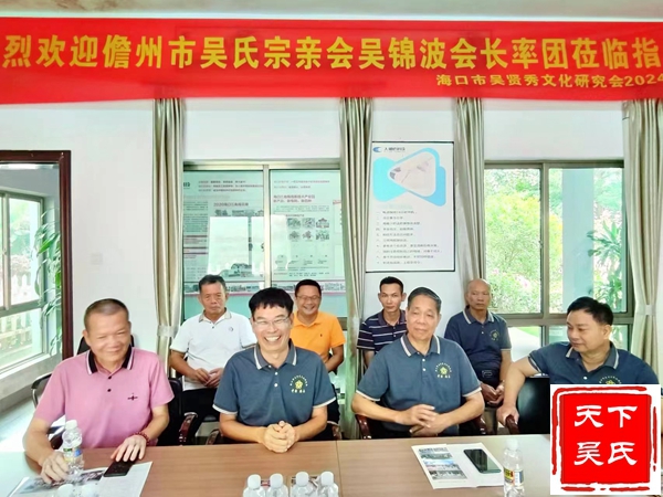 儋州市吴文化研究会高顾问吴勇,会长吴锦波在会谈中说,“我们这次主要是来学习的,你们的经验对我们今后的工作带来很大的启发,收获颇丰。海口、儋州两市是海南吴氏人口最多的地方。希望在推动各方互动互鉴、共同推进吴文化建设的发展作出贡献。”