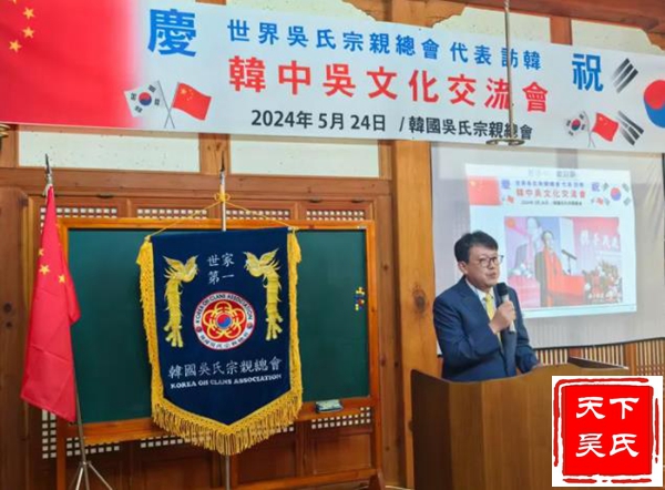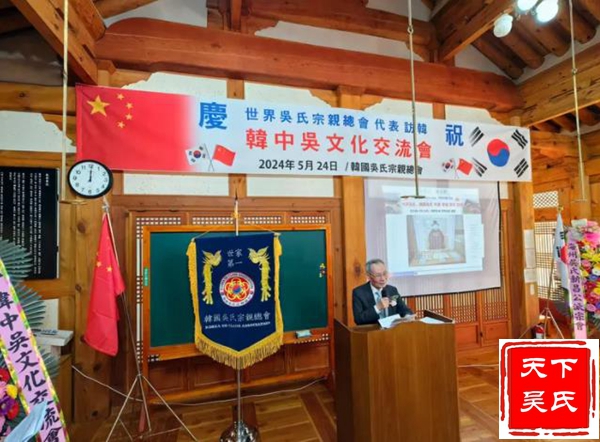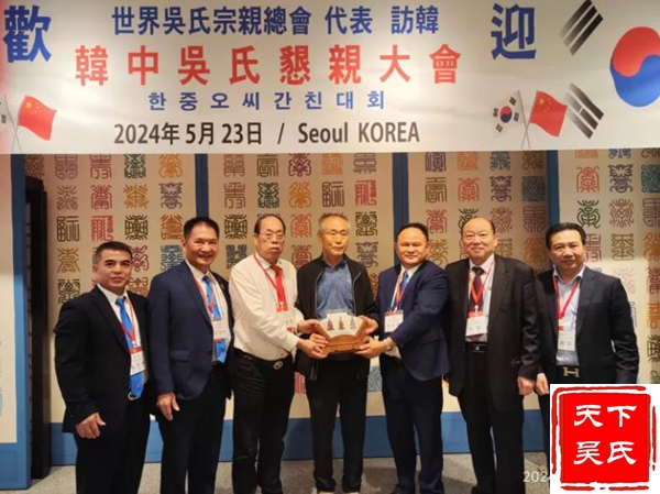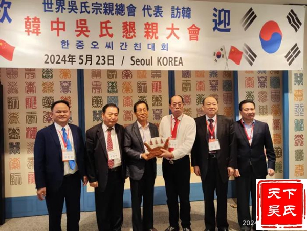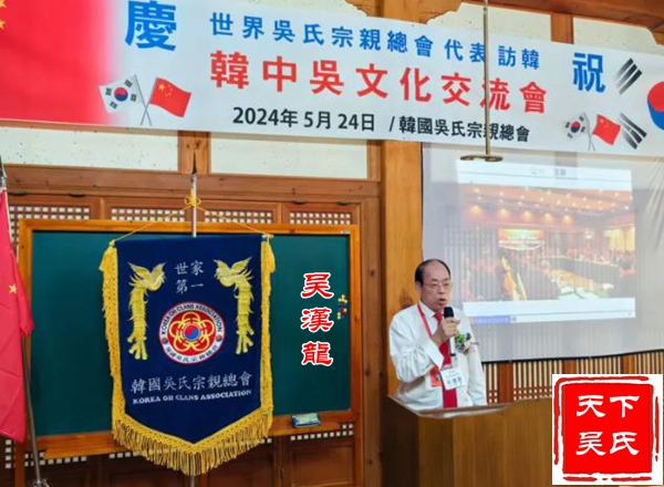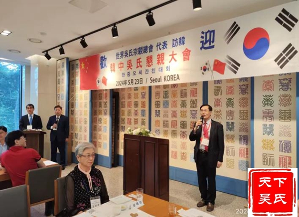 他提到韩国吴氏宗亲到福建泉州合族大宗祠参加甲辰年春祭大典。吴永泽会长提到何为合族,我给他解释说,同是一个吴,因为种种原因断代,所以合族。近年来,我们之所以到各个国家恳亲交流,就是要把大家联谊团结起来,虽然语言不通,但是我们身上共同留的血液相通。包括服装,饮食,宗斋文化与中国的宗祠文化意义都是相同的,所以需要多交流,多互动,把我们传统的吴氏文化世代相传。同时,要加强经济、教育的合作交流和研究,促进世界吴氏的共同发展。