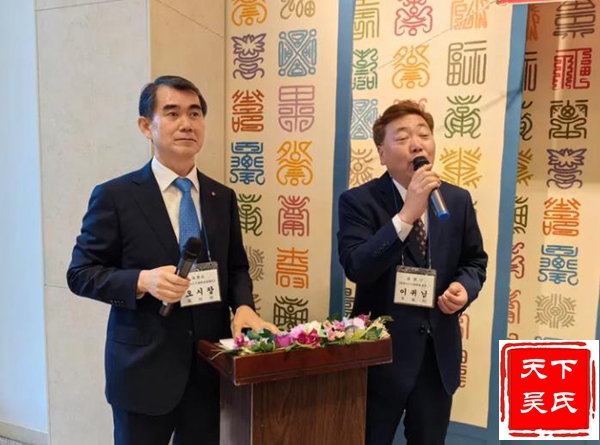 他介绍说,韩国的吴氏宗亲来自中国,2015年韩国统计厅人口调查结果显示,吴氏为763281人,在韩国姓氏排名第12位,共有26个籍贯。吴氏本馆的排名依次为海州462704名、同福72394名、宝城711627名、咸阳35846名、军威26949名,五大本馆占全体的88%。其中排名第一的海州吴氏占吴氏总人口的61%,在国内姓氏籍贯排名第18位。