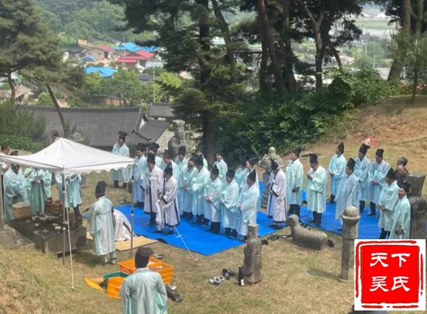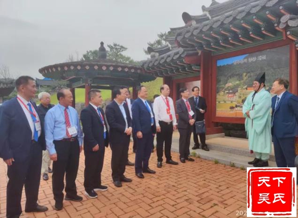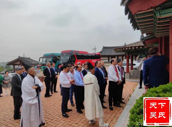 下午14点,恳亲团一行按照议程安排参加了对海州吴氏始祖贞武公吴定邦的墓祭仪式。这一活动不仅是对韩国吴氏祭祀礼仪的一种体验,更是对他们先祖的敬仰,也是对吴氏家族文化传承三让精神的一次集体致敬。在肃穆的仪式中,每一位参与者都深刻感受到了身为吴氏后裔的责任与荣耀,激励着大家在新时代继续发扬光大祖先的传统美德。