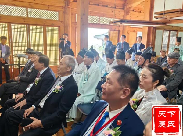 最后,他代国务院原副总理吴桂贤大姐带来了问候,祝贺中韩两国吴文化交流圆满成功,并向韩国吴氏宗亲总会致以亲切的问候。同时他还代表恳亲团感谢吴富泳宗长这些年来不断的促进中韩吴氏的文化交流,让中韩的吴氏宗亲紧密的联系在一起。