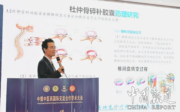 贾孝荣教授给与会专家学者介绍杜仲骨碎补胶囊在骨科领域的临床应用