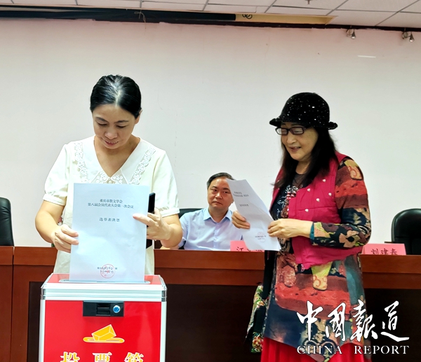 中国报道讯(吴蜀丰通讯员李茜)七月小暑,荷风送香。7日下午,重庆市散文学会第八届会员代表大会第一次会议在重庆市文化和旅游研究院召开。重庆市作家协会党组书记、专职副主席何浩,重庆市民政局社会组织管理局局长江文波,重庆市作家协会副主席谭竹,重庆市作家协会组联部主任陈飞到会指导。来自全市各区县的90名会员代表参加会议。中国散文学会和四川、山东、浙江、江苏、湖南、湖北、陕西、辽宁、山西、河南、贵州等13个散文学会向大会发来了贺信。大会由七届副会长刘德奉、丁友成分别主持。