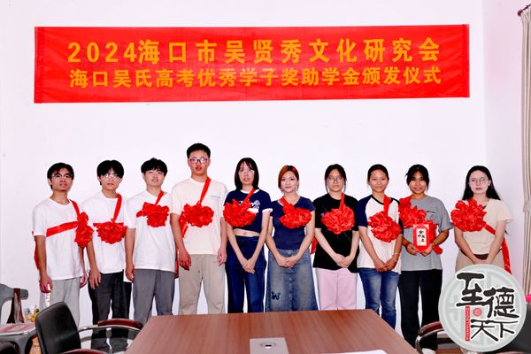 至德天下网讯(海南工作站吴乾山报道)拳拳爱心点燃希望之光,片片真情托起明日朝阳。2024年8月15日海口市吴贤秀文化研究会“奖学助学”颁奖活动在海南花卉大世界木棉花路2号研究会办公会议室举行。会长吴林桥、常务副会长吴富荣、吴敦壮、吴孝权、监事长吴和春,秘书长吴乾山、会党支部书记吴坤清、副会长吴淑波、吴淑珍、吴清贵、吴明海、吴建良、吴枞仕、吴李金妮、及理事吴忠、吴宁、监事吴群、吴开僚等出席本次颁奖仪式。