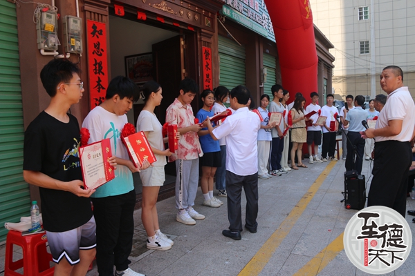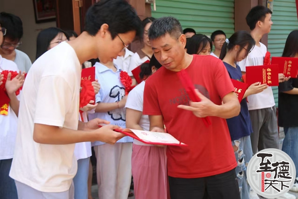 秋阳高照,祖厅生辉。犹江新城吴氏祖厅装点一新,彩虹门高拱,乐曲悠扬,锣鼓喧天,处处洋溢着喜庆祥和的节日氛围。上午九时,参会人员从各地陆续赶到了颁奖地点,学子们有序排队签到,应福秘书长和昌毅副秘书长欣慰地为高考优秀学子佩戴大红花。