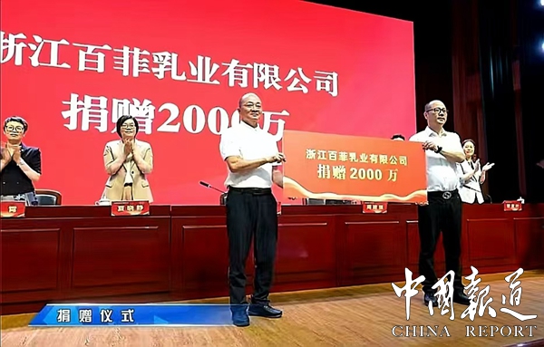 百菲乳业董事长吴守允热爱家乡,多次捐资助推家乡教育发展,此次教师节又捐资2000万元,体现出一位企业家的大爱精神,为社会的繁荣和稳定注入了强大的动力,为全县教育事业作出了突出贡献。