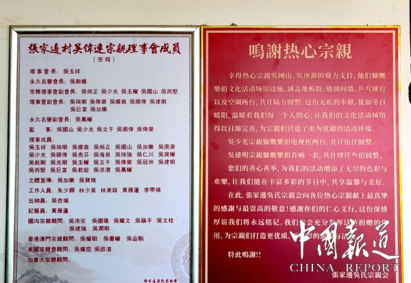 張家邊村吴氏宗祠占地面积1050平方,总投资疋150万元。吴蜀丰对共同出资建張家邊村吴氏宗祠给予高度赞赏并就祠堂外貌结构优化提出建议。