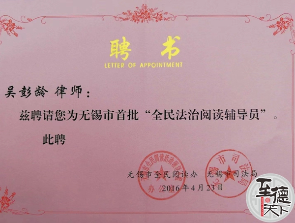 常年法律顾问吴彭龄 执业证号码:13202199210937510 江苏仁勤律师事务所