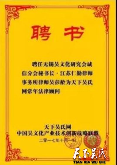 天下吴氏网常年法律顾问:吴彭龄
