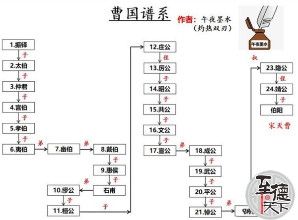 曹叔振铎是中华曹姓的始祖,从公元前1046年到公元1949年的2995年间,他的后人中出现很多具有远见卓识的政治家,军事家,科学家,文学家。其中,有帝王、总统级的人物有32个,宰相、首辅级的人物25位。到目前,全国的曹字冠名州县区镇村2万多处,曹姓人口达730多万。在全球曹姓人口遍布各大洲,曹氏“三多堂”早在100多年前,就与日本、俄罗斯、法国、英国等国家地区开展经商活动。