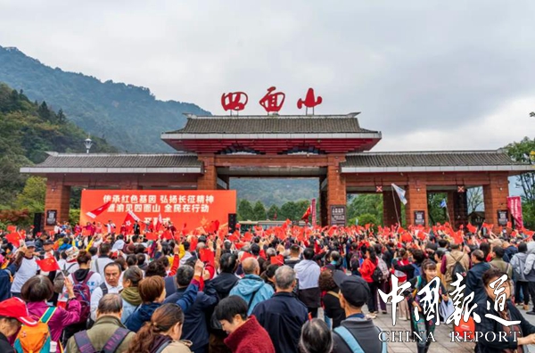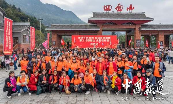 中囯报道讯(吴天下报道)初冬的四面山景区迎来了红色旅游小高峰。11月9日,“传承红色基因·弘扬长征精神暨渝见四面山·全民在行动”红色之旅在四面山景区北门启动,几千名游客来到四面山,欣赏美景的同时,体验红色文化,接受红色洗礼。