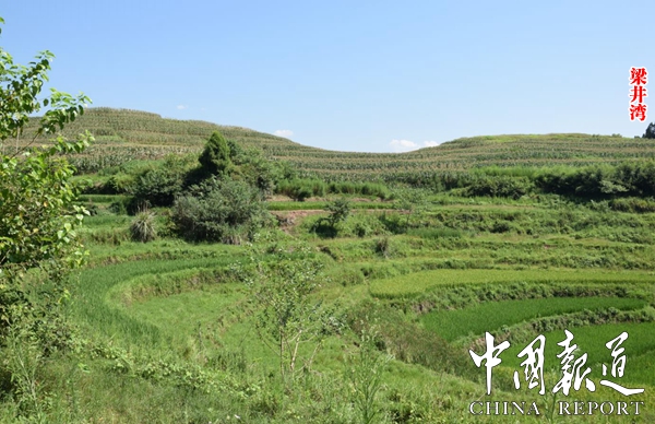往北打望人文厚重的下吴家湾(楼脚),吴家屏,梁井湾,王家山,后头湾至更远蒋家山脉的贾郭山(海拔1080米)