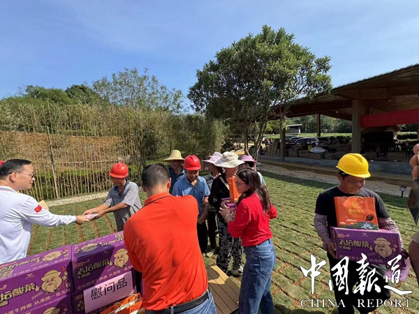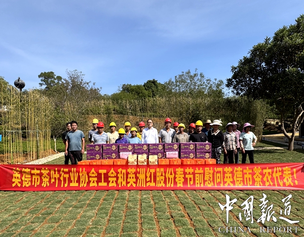 中国报道讯 (吴天下通讯员 姚雯璐 吴庆尚) 11月13日上午11点,一场温馨而意义深远的春节前慰问活动在英德市茶趣园景区隆重举行。此次活动由英德市茶行业产业协会工会联合会主席黎水清、英德市石灰铺镇党委政府代表以及广东英洲红农文旅科技股份有限公司(以下简称“英洲红公司”)股东会主席黎沛生共同发起,旨在向辛勤耕耘的茶农们表达节日的关怀与敬意。