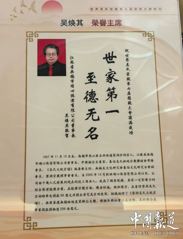 热烈祝贺吴焕其荣升香港世界吴氏宗亲总会第七届荣誉主席