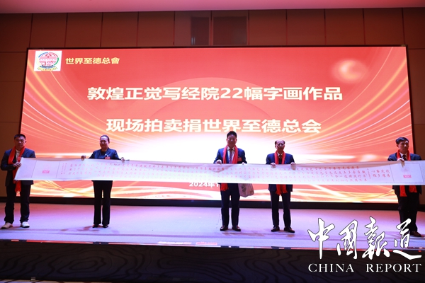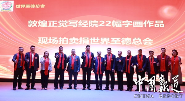 世界至德总会常委、中国敦煌正觉写经院院长王淑萍介绍正觉写经院旗下汇聚一大批写经师和画家。王淑萍随行带来国画大师作品20幅帧、写经师6米长卷《婆罗蜜心经》书法作品2幅。20帧国画现场拍卖,抢购一空。所得经费全额捐赠世界至德总会。两幅书法作品一幅赠与总会,一幅赠与大会协办单位。